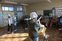 そこで、毎週木曜日の業間には全校生でドッジボールを行って楽しみながら、ボール投げをする機会を増やしています。(しかし、逃げ回ってばかりの子は、なかなかボールに触れることさえできません。)