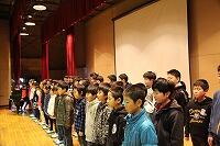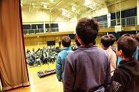 校長先生のお話を聞いて、校歌を斉唱しました。