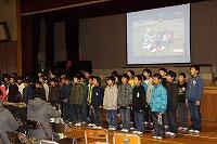 その後、いよいよ始業式。全児童が体育館に集合しました。各学級2名の代表児童が、新年のめあてを発表しました。
