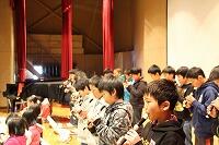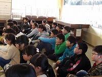 子ども達は、粂川吉美さん(バイオリン、ビオラ、歌)、粂川正子さん(バイオリン)、原口佐登子さん(ピアノ)の演奏に聴き入っていました。