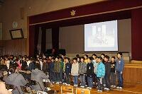 校長先生のお話を聞いて、校歌を斉唱しました。