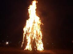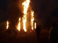 点火後、炎は音を立てて一気に燃え上がり、天まで届くほどの勢いでした。きっと、いろいろな災いを焼き払ってくれることでしょう。