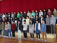 本日から1年生から5年生が体育館に集合して、卒業式の別れの言葉の呼びかけの練習と6年生を送る会で6年生にプレゼントする歌「ひまわりの約束」の練習を始めました。初めてで緊張している児童もいましたが、けっこう大きな声を出すことができました。