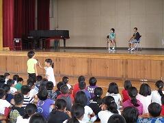 児童集会で、美化委員会と放送委員会の発表がありました。