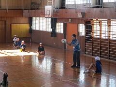 朝から昼休みまでという限られた時間でしたが、まず、6年生の授業を参観し、5・6年生には「バレーボール」の授業を、さらに3年生の「跳び箱運動」の授業支援までしていただきました。
