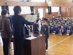 12月の全校朝会・児童表彰伝達がありました。