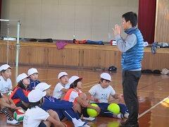 今回は、西方中学校から保健体育が専門の久田教諭が来校し、高学年を中心に体育の指導をしていただきました。