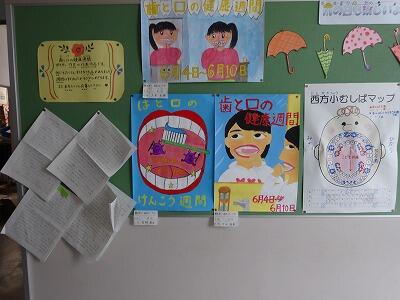 みんなが描いてくれたむし歯予防のポスターを掲示したり、委員会の児童がむし歯マップを作成してくれたり、むし歯予防の作文を給食中に放送してくれたりしました
