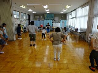 後半は運動教室でした。インストラクターの資格がある講師をお招きし、約45分のエアロビクスを行いました。有酸素運動と無酸素運動を行いいい汗をかきました
