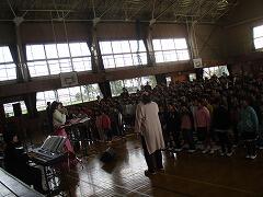 そして、代表児童がオカリナ演奏に挑戦したり、みんなで校歌や「365日の紙飛行機」を歌ったりしました。
