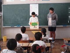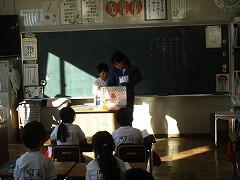 そして1~3年生の教室には、毎朝図書委員が出向いていき、紙芝居の読み聞かせをしてくれています。子ども達は、高学年のお兄さんお姉さんが読んでくれる紙芝居を、楽しみに待っています。