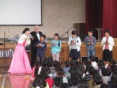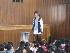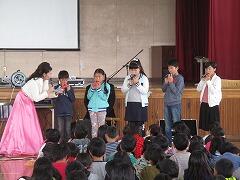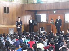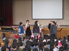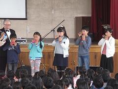そして、代表児童がオカリナ演奏に挑戦したり、みんなで校歌や「365日の紙飛行機」を歌ったりしました。