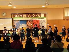 ハンドベルで演奏したのは「小さい秋みつけた」で、その後、「栃木市民の歌・明日への希望」を全員で歌い、観客の皆さんから大きな拍手をいただきました。