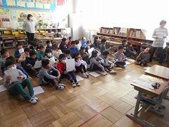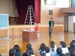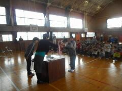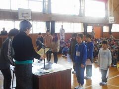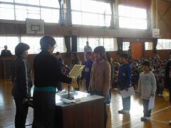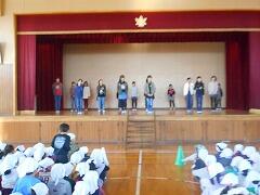 最初に、ちょっと間が開いてしまいましたが11月に転入した2年生児童の紹介がありました。全校生の前で堂々と自己紹介ができました。