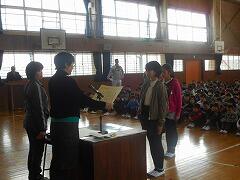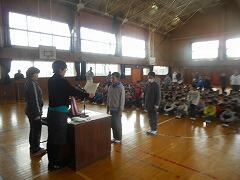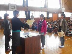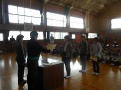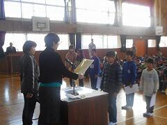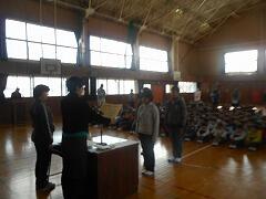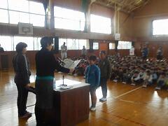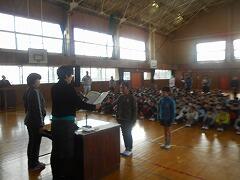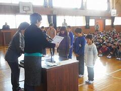 12月25日(月曜日)4時間目の終業式の前に、2学期最後の表彰伝達がありました。本来はもう少し前に行う予定でしたが、インフルエンザ流行のため集会の延期が何回か続き、伝達が最終日の今日になってしまいました。
