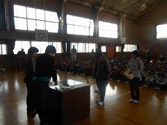 見学はほぼ参加自由の発表会でしたが、全学年からたくさんの児童が体育館に集まりました。