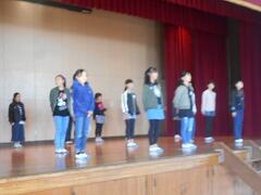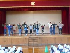 最初に、ちょっと間が開いてしまいましたが11月に転入した2年生児童の紹介がありました。全校生の前で堂々と自己紹介ができました。