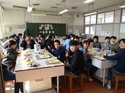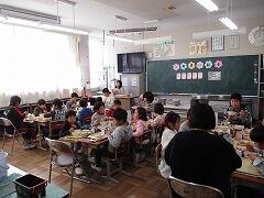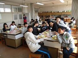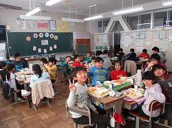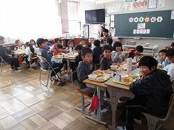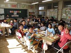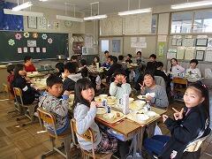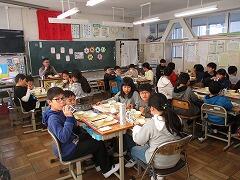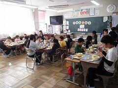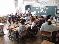各学級では、給食のグループそれぞれに6年生に入ってもらって、在校生はみんな、うれしそうに会食していました。(6年生は、やや緊張気味?に見えました。)