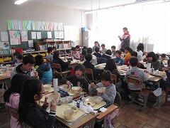 2月23日(金曜日)、6年生が下級生の教室に出向いて一緒に給食を食べる「交流給食」の最終日でした。