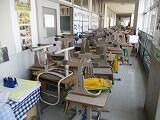 ▼教室の机・いすを廊下に出して…ワックスがけ