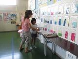 現在、夏休みの作品受付期間中です。昨日も今日も、たくさんの人が、提出に来てくれました。始業式の日は、荷物が多くなるので、明日の午後4時までの間に、ポスターや絵画、工作、作文や感想文等の作品を、どんどん提出に来てください。昇降口に、長机が用意してあります。学年表示のところに並べていってください。登校したら、必ず職員室に声を掛けてくださいね!!お待ちしています。