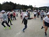 ロング昼休みに、全校で校庭に集まって、全校遊びをしました。今回は『逃走中』です。
