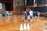 次にアイマスクをつけて、盲導犬と共に歩く体験をしました。学級の代表の10名が体験しました。
