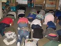 業間の時間に、避難訓練をおこないました。今回は、竜巻がきたときを想定して、避難の仕方を学びました。各学年ごとに窓のないスペースに避難し、だんご虫のポーズをとり自分の安全を確保しました。この形は、一番大切な“頭部”と“首筋”を保護することができるポーズとして、勧められています。何か、帽子以外にも頭から首にかけて、かぶることができる物があったら、それを使って守ることが大切だそうです。