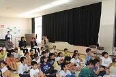 4年生が、3・4時間目に体育館で「盲導犬教室」をおこないました。学年PTAの行事としておこなったので、家の人もたくさんご参加くださいました。今回の講師は東日本盲導犬協会の久野さんと盲導犬1頭が来校してくれました。まず目の不自由な方の困っていることや盲導犬の一生についての話を聞きました。