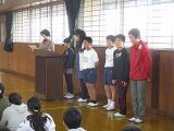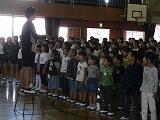 業間の時間に、明日の『鶴が岡集会』のリハーサルを、全校児童が体育館に集まっておこないました。