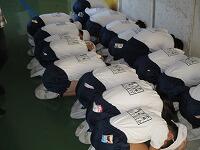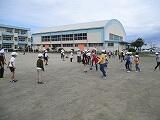 6時間目に6年生が体育館の最後の仕上げをしてくれて、準備完了