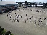 ▲走り終わると、整理運動をして…教室に入ります。