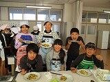 今回は、グループでメニューを考え、材料も分担して持ち寄って作りました。「ゆでて→いためる」「ゆでて→焼く」「いためて→にる」などの2段階の調理をすることを課題としました。