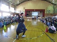 交流体験では5、6年児童のみでしたが、投げる練習を行いました。