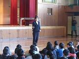 業間の時間に、児童集会がありました。今回は、人権委員会と音楽クラブの発表をおこないました。
