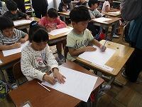 1年生国語の授業の様子です。さつまいももち作りの体験を生かして自分の考えを書く授業を行いました。