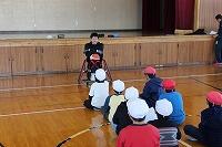 4年生の総合的な学習の時間に、福祉について学んでいます。今日は「車いすバスケ」と「点字」の体験をさせていただきました。車いすバスケは、社会福祉協議会の倉野さん、中田さんにお世話になりました。競技用車いすに乗り鬼ごっこをして車いすに慣れ、シュート練習をした後、車いすバスケのゲームをしました。倉野さんは車いすバスケの競技者なので普段から車いすで生活をされています。車いすを使用していても、車の運転や家事は普通にしている話を聞いて、児童たちは障害のある方への見方を改めていました。