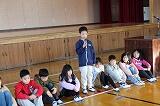 ▼みんなでやるゲームについて質問が上がり、意見を出したクラスの代表が演示しているところです。