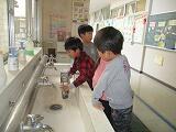 ▼マスクの着用と、手洗い・うがいで予防をする子どもたち
