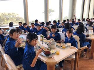 バイキング形式で昼食です。みんな、バスの中から「お腹空いちゃった~」と言っていたので、嬉しそうです。グループで協力して準備をして、美味しくいただいてます。
