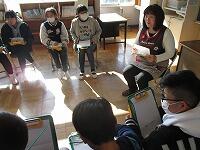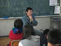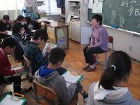 5時間目に、4年1組で研究授業をおこないました。算数の「小数と整数のかけ算・わり算」という単元の授業でした。今回は、同じ授業を二つの形態でおこなう授業として、担任の富田勝巳先生が集団の授業で、穗坂陽子先生が少人数の通級教室で指導するところを参観し合いました。