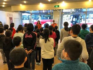 予定より少し遅れて学校に到着しました。都賀インターから下りるとバスの中では、「何か見慣れた景色が…」「やっぱり、いいなぁ」などと、西方地域を味わう言葉が聞こえてきました。