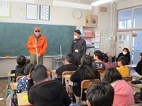 最後に2人組になりアイマスク体験を行いました。坂田さんに介助のやり方を教わり、実際に廊下や階段を歩いてみて、子どもたちは、目の不自由な方の気持ちを体験することができました。