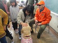今回講師として坂田英樹さんに来校していただきました。坂田さんは栃木市でただ一人の盲導犬ユーザーさんです。当日は盲導犬「ぼたん」ちゃんも一緒に来校してくれました。児童は、まずDVDを見て補助犬について学びました。その後坂田さんに盲導犬のこと、普段の生活について質問をしました。