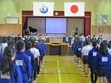卒業した6年生がいない、ちょっぴり広く感じる体育館に、1~5年生が集合しました。