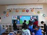 ▼1年生から5年生までのお祝いのメッセージが、壁面を飾っています。