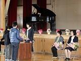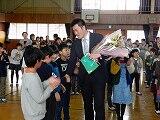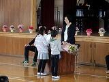 代表児童による、心のこもった手紙の朗読と、きれいな花束を贈りました。先生方は、うれしそうに、そして涙を浮かべていらっしゃいました。
