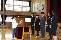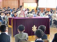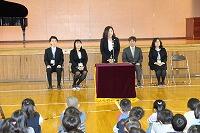 まず新任式を行いました。西方小学校は今年度5名の先生方が着任いたしました。児童代表がお迎えの言葉を述べました。そのあと、5名の先生方が一人ずつあいさつをしました。児童は、新任の先生方を温かく迎えていました。
