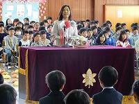 校長先生のお話やPTA会長様の祝辞をいただき、6年生の代表児童が「お迎えの言葉」を発表しました。2年生から6年生までの児童も1年生の入学を祝福していました。