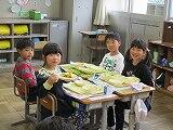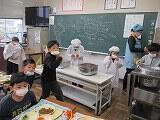 「西方小の給食は、どうですか?」「おいし~い!!」と、にこにこしながら食べていました。